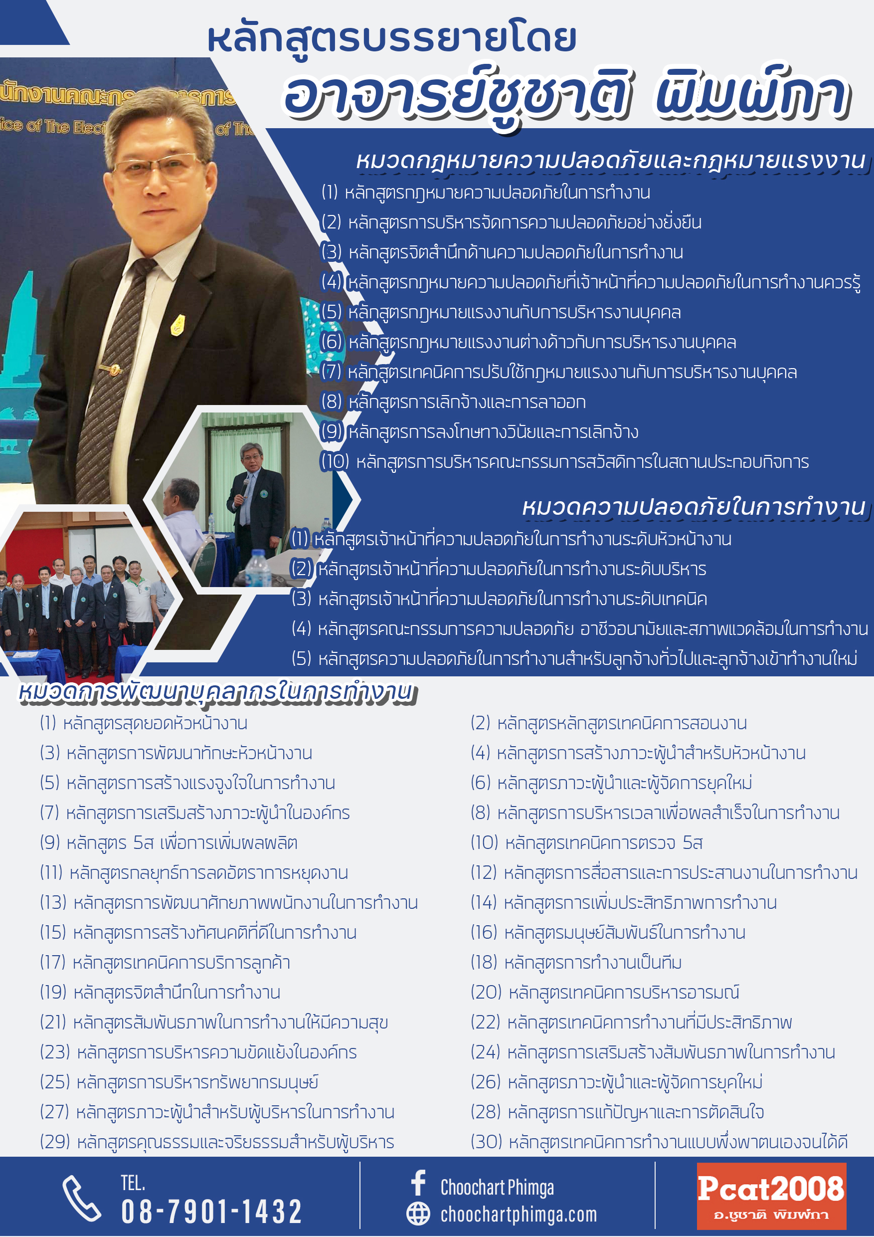 ด้วยประสบการณ์มากกว่า 28 ปีในการบริหารงานบุคคลการบริหารแรงงานสัมพันธ์ ความปลอดภัยในการทำงาน และกฎหมายแรงงานในโรงงานอุตสาหกรรมและการเป็นวิทยากรบรรยายด้านการพัฒนาทักษะการเป็นหัวหน้างาน การบริหารแรงงานสัมพันธ์เพื่อเพิ่มประสิทธิภาพในการทำงาน การบริหารความปลอดภัยในการทำงาน และกฎหมายแรงงานสำหรับหัวหน้างาน เป็นต้น มีความเชี่ยวชาญด้านการบริหารความปลอดภัยในการทำงาน ด้านการบริหารแรงงานสัมพันธ์และด้านกฎหมายแรงงาน
